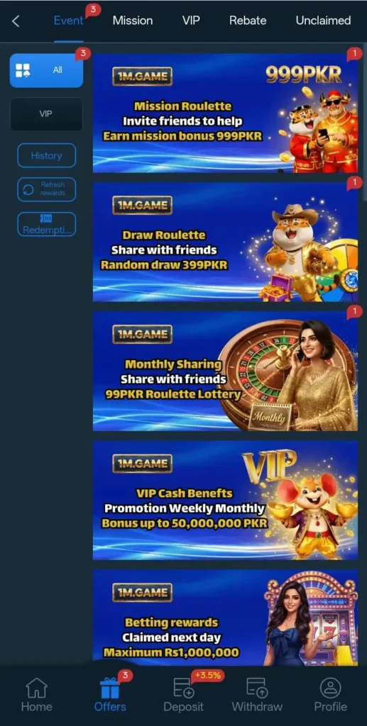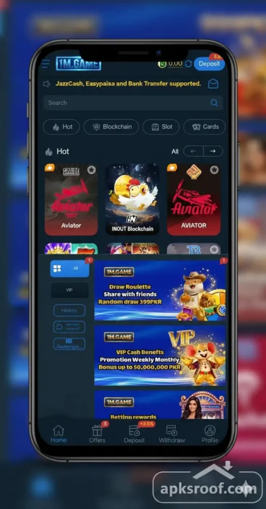 Local accessibility: The app supports popular Pakistani methods like Jazzcash and easypaisa, making deposits and withdrawals quick and easy without needing complex methods. The app taps into a mobile first mindsets of local players, where gaming meets economic needs.