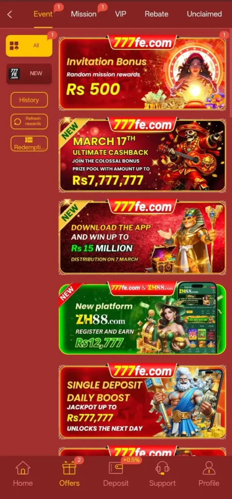 Peer Income Features – The 777FE Peer Referal system not only benefits a single player but also encourages friends to join via an invite link and build teams for virtual competitions to get extra income.