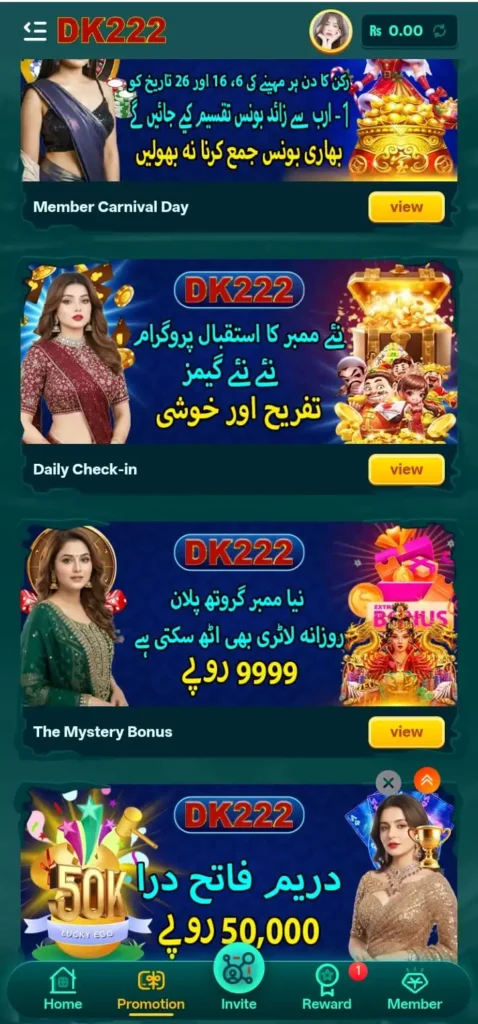 Since most users in Pakistan use low to high-spec Android phones, the DK222 Android APK is optimized for smooth installation and performance. The file is available as an apk based gaming app, which needs a simple account and registration.