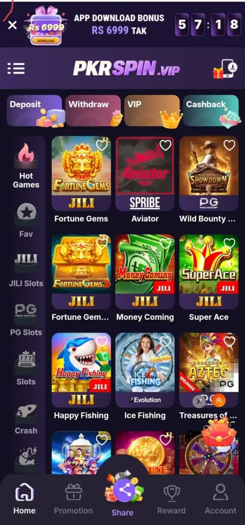 Pkrspin game is an online platform with a bulk of igame options to play directly in an easy to use android app. It is designed for local players of Pakistan who need games that give entertainment and benefits as well. It allows players to
