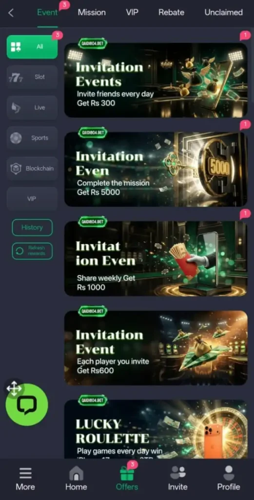 - Invite, referral, vip, spins, login rewards, and many other bonuses are available